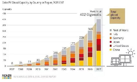根據(jù)REN21的2018年“全球可再生能源現(xiàn)狀報(bào)告”(GSR),