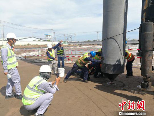 由于電廠地處越南濱海沖積平原,地勢低洼,地質條件復雜,再加上工期緊、任務重。為此,自今年5月份進場以來,中鐵十一局四公司項目部不斷優(yōu)化施工方案,一邊建設施工生活居所,一邊從國內快速組織人員和機械設備進場,保證了工程提前開工,得到了業(yè)主的好評。