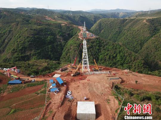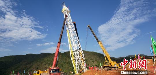 勐崗河懸索跨越北岸塔架吊裝作業(yè)現(xiàn)場。華昱翔攝