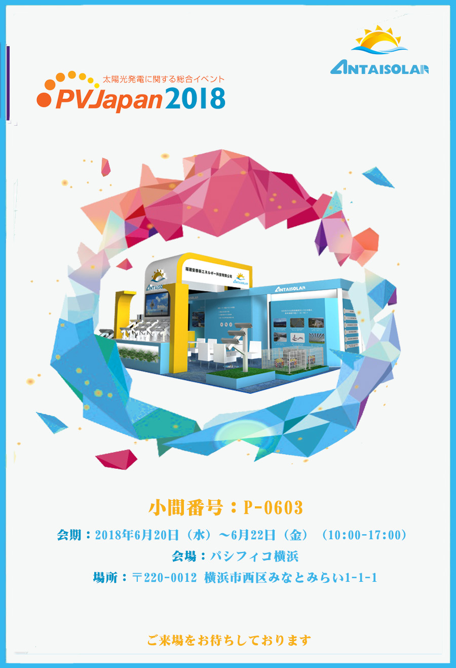 PV Japan 2018為日本乃至亞洲地區(qū)規(guī)模最大、專業(yè)性最強、影響力最大的可再生能源行業(yè)展覽會。該展覽已成為開拓日本這個世界第二大太陽能市場以及不斷成長的亞洲太陽能市場的最佳平臺。展會同期將舉辦多個專業(yè)論壇、研討會及特別講座,展示最先進的太陽能技術,預測行業(yè)發(fā)展趨勢。國際知名光伏制造商——專注優(yōu)質(zhì)鋁合金架臺十余載——福建安泰新能源將攜多款明星產(chǎn)品參展。