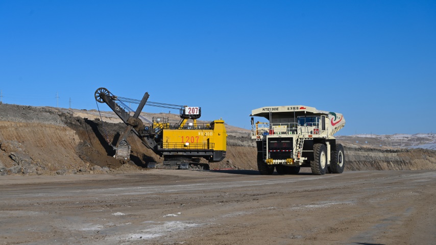 在扎哈淖爾露天煤礦生產(chǎn)現(xiàn)場,15臺(tái)120噸級(jí)純電動(dòng)輪礦用車正在有序作業(yè)。