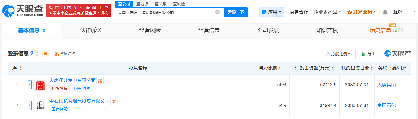 大唐集團(tuán)、中國石化在南京成立清潔能源公司 注冊資本9.4億