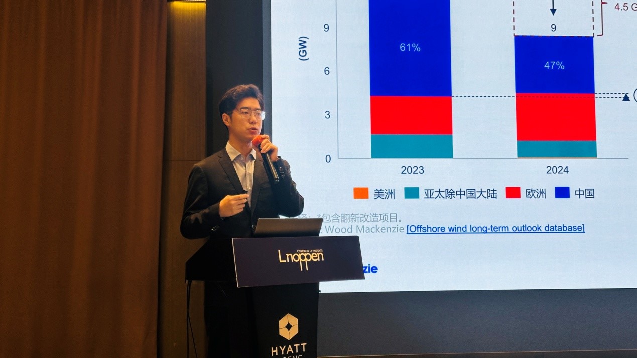 伍德麥肯茲海上風(fēng)電市場(chǎng)分析師王宇凡以《全球海上風(fēng)電市場(chǎng)的現(xiàn)實(shí)與機(jī)遇》為題發(fā)表了演講,分享了全球海上風(fēng)電市場(chǎng)現(xiàn)狀、市場(chǎng)的動(dòng)態(tài)調(diào)整以及未來(lái)發(fā)展的關(guān)鍵因素。