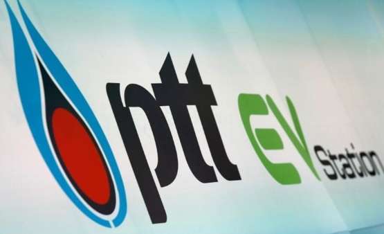 文件圖片:2016年8月15日,泰國(guó)曼谷的商用EV(電動(dòng)汽車)充電站啟用期間,PTT Pcl能源公司的標(biāo)志被看到。路透社/ Jorge Silva / File Photo