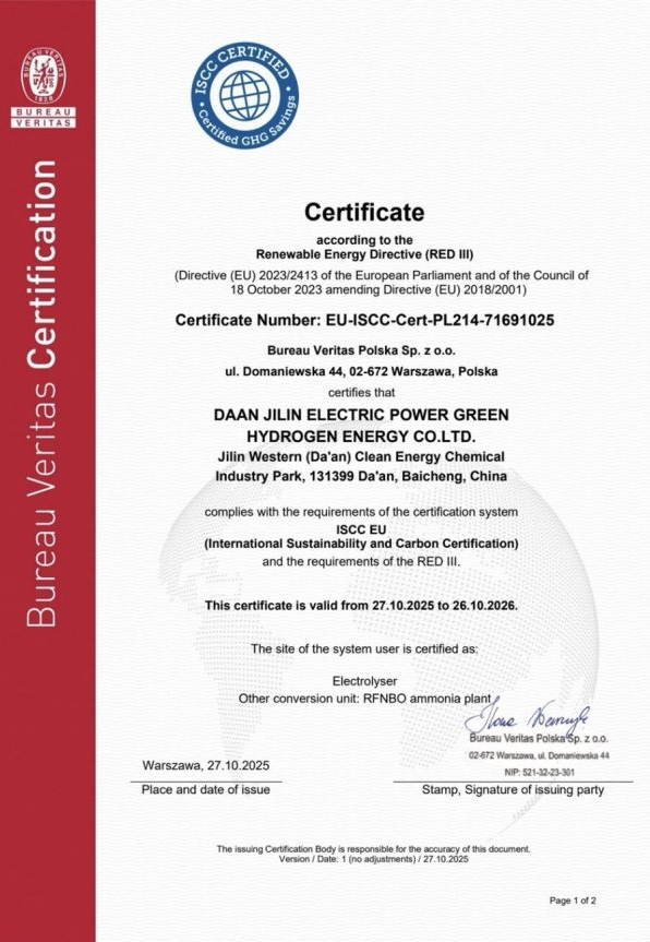 “ISCC EU RFNBO ”認(rèn)證作為可再生燃料非生物來源氨的認(rèn)證體系,覆蓋原料、生產(chǎn)、應(yīng)用全生命周期評估,其嚴(yán)苛標(biāo)準(zhǔn)成為國際綠色能源領(lǐng)域的“通行證”。大安項目通過認(rèn)證,意味著綠氨生產(chǎn)技術(shù)、管理體系和碳核算標(biāo)準(zhǔn),全面滿足歐盟《可再生能源指令》(REDⅢ)要求。