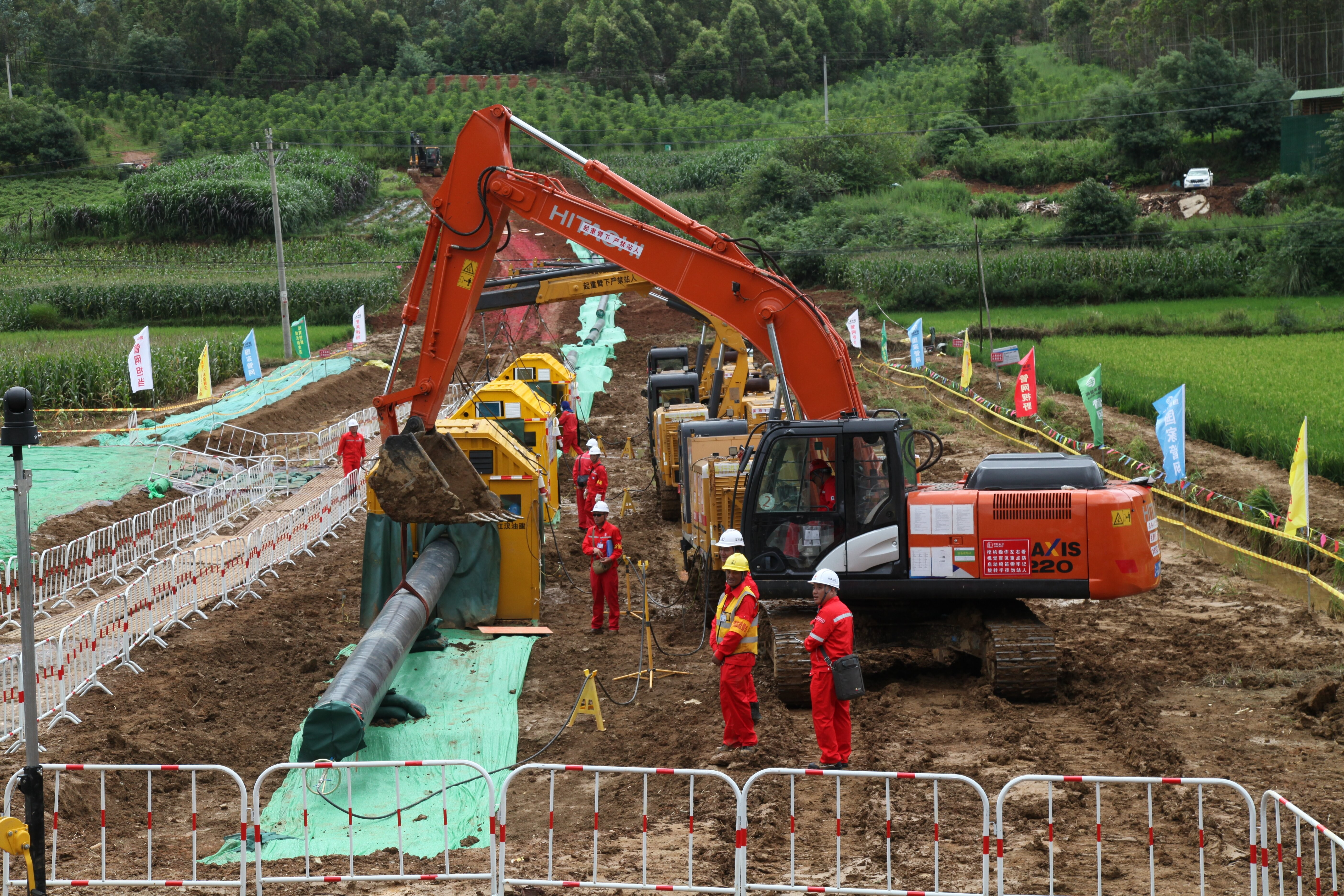 “轟隆隆.....”寬闊的作業(yè)帶上,幾臺(tái)挖掘機(jī)正在施工,巨大的溝槽逐漸成型,兩側(cè)整齊地堆放著防護(hù)用的材料和即將鋪設(shè)的管道。自2024年8月開工建設(shè)以來,這項(xiàng)工程綜合進(jìn)度已超50%,焊接里程突破263公里,預(yù)計(jì)2026年全面建成具備投產(chǎn)條件。屆時(shí),將全面實(shí)現(xiàn)“桂氣入滇”。