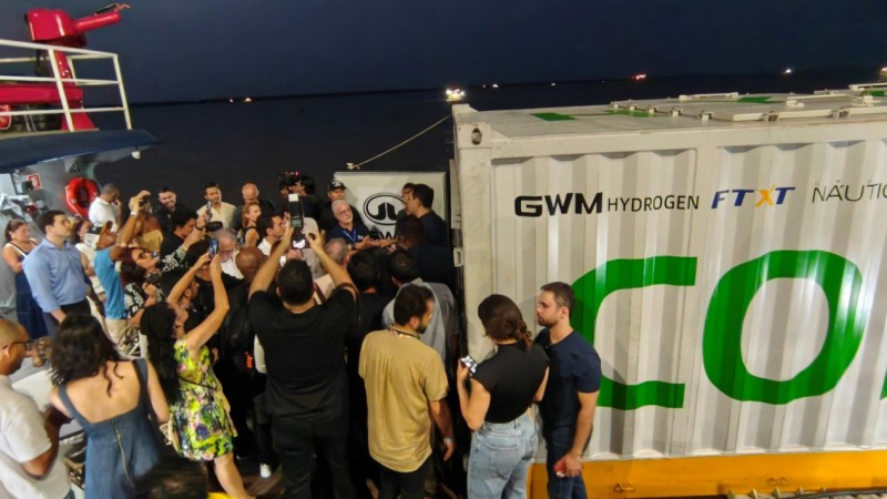 會議期間,由未勢能源聯(lián)合海大清能與巴西JAQ、NAUTICA、ITAIPU PARQUETEC 公司共同研發(fā)制造的巴西首艘氫能科考船——“探索者 H1(Explorer H1)”首次正式亮相,并停靠在帕拉州貝倫市的港口碼頭旅游區(qū)面向公眾開放參觀,旨在為用戶提供沉浸式體驗。