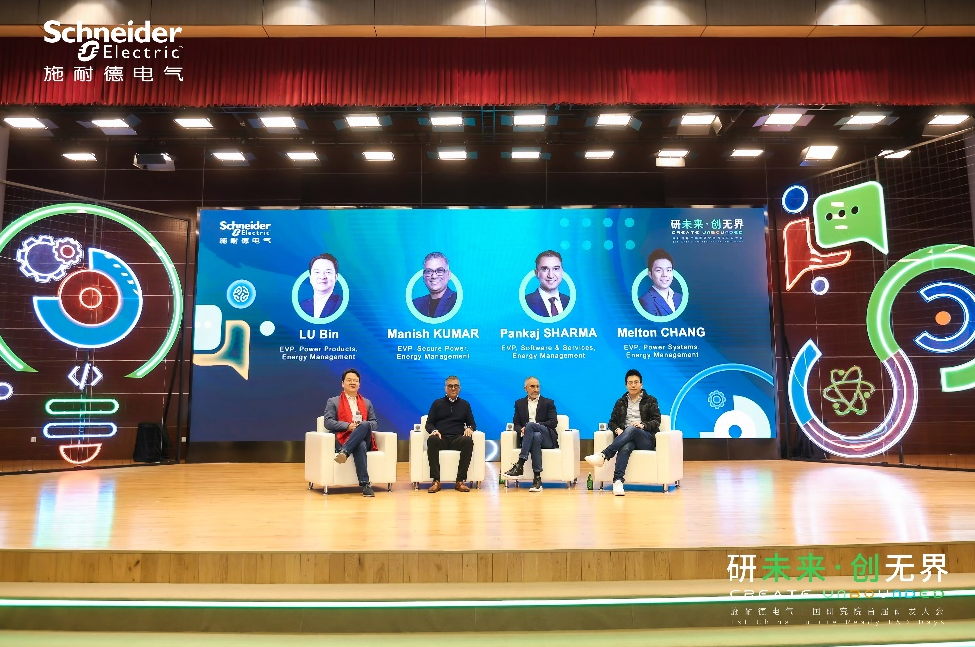 在業(yè)務(wù)線圓桌論壇環(huán)節(jié),施耐德電氣執(zhí)行副總裁、能源管理低壓配電產(chǎn)品事業(yè)部負責(zé)人陸斌,施耐德電氣執(zhí)行副總裁、能源管理關(guān)鍵電源業(yè)務(wù)負責(zé)人Manish Kumar,施耐德電氣執(zhí)行副總裁、能源管理軟件與服務(wù)業(yè)務(wù)負責(zé)人Pankaj Sharma,與施耐德電氣執(zhí)行副總裁、能源管理電力系統(tǒng)業(yè)務(wù)負責(zé)人Melton Chang,圍繞產(chǎn)業(yè)發(fā)展趨勢、全球業(yè)務(wù)布局及跨領(lǐng)域創(chuàng)新合作展開深度對話,為研發(fā)團隊明確了未來技術(shù)布局與中國研發(fā)定位。