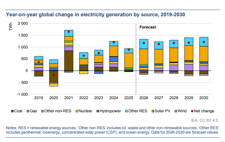 國際能源署(IEA)6日發(fā)布《2026年電力市場展望》,預(yù)測在2026-2030年,全球發(fā)電量將達到多個新的里程碑。