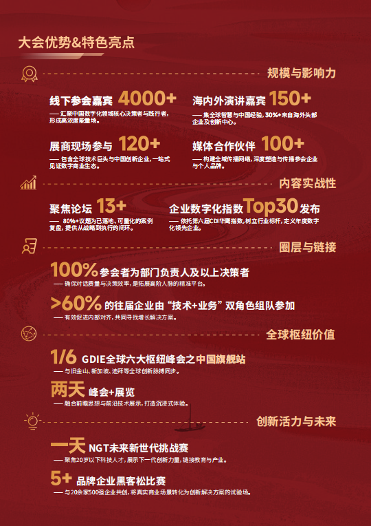 行業(yè)風(fēng)向標(biāo):4000+國(guó)內(nèi)外企業(yè)高管、學(xué)術(shù)專家、技術(shù)專家線下齊聚,探索數(shù)字化未來的更多可能性