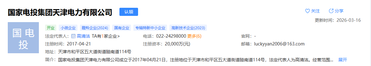 天津電力公司是國家電投集團(tuán)在津設(shè)立的省級子公司,承擔(dān)集團(tuán)公司在天津的區(qū)域規(guī)劃、市場開發(fā)及屬地化管理職能,負(fù)責(zé)區(qū)域新能源集中運(yùn)維及全電源品種集中營銷。