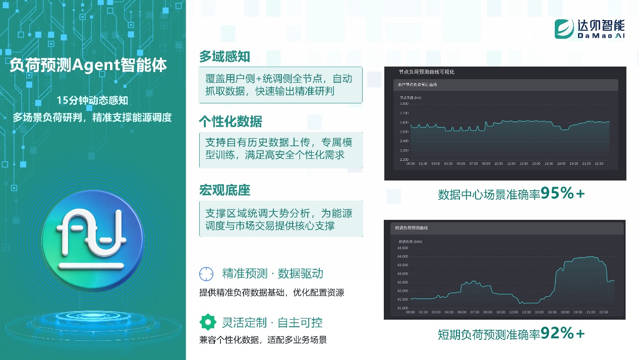 負荷預測Agent :針對數(shù)據(jù)中心、工業(yè)負荷等高精密場景實現(xiàn)動態(tài)滾動預測,核心場景預測準確率穩(wěn)定保持高位,精準捕捉算力波動與用電峰谷變化,為調(diào)度交易筑牢數(shù)據(jù)基礎(chǔ)。