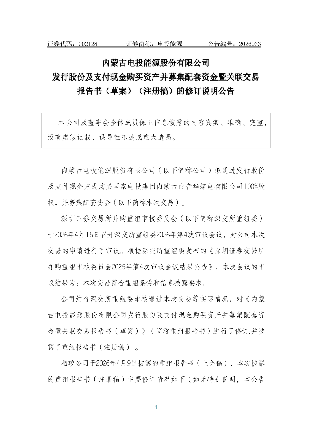 4月16日,內(nèi)蒙古電投能源股份有限公司(以下簡稱“電投能源”)公告稱,擬通過發(fā)行股份及支付現(xiàn)金方式購買國家電投集團內(nèi)蒙古白音華煤電有限公司100%股權,并募集配套資金。