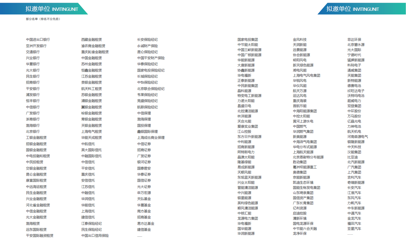 包容、開放、合作是“能金會(huì)”一貫主張,各路專家學(xué)者、行業(yè)大咖共聚一堂,為能源金融發(fā)展獻(xiàn)策獻(xiàn)力,實(shí)現(xiàn)行業(yè)的共享、共贏是大會(huì)不變的中心思想。據(jù)了解,第二屆“能金會(huì)”擬邀請(qǐng)國(guó)家級(jí)行業(yè)協(xié)會(huì)、重點(diǎn)科研院所、大型咨詢公司、銀行及各分行、融資租賃、保險(xiǎn)信托、基金、證券、保理、資本、風(fēng)投、金控等金融機(jī)構(gòu)和央企及央企子公司、省市級(jí)地方國(guó)企、水電、儲(chǔ)能、太陽(yáng)能、風(fēng)能、氫能、生物質(zhì)能、新能源汽車、節(jié)能、環(huán)保、分布式、創(chuàng)新技術(shù)、冷熱電聯(lián)產(chǎn)、綜合能源服務(wù)、能源EPC設(shè)計(jì)商、承建商等政府機(jī)構(gòu)、科研單位、能源企業(yè)和國(guó)內(nèi)權(quán)威媒體、行業(yè)媒體參會(huì),會(huì)議規(guī)模預(yù)計(jì)將達(dá)700人。