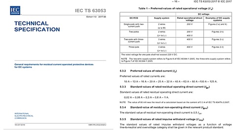 針對(duì)采用電源端接地的TT、TN接地形式的直流配電系統(tǒng)的接地故障防護(hù),使用剩余電流保護(hù)依然是最好的方式,對(duì)此IEC發(fā)布了 IEC TS 63053:2017《General requirements for residual current protective devices for DC systems》。該直流剩余電流保護(hù)裝置(DC-RCD)