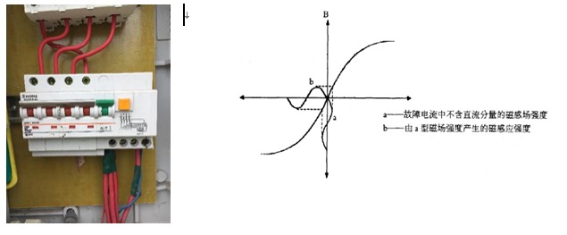 可以看到,如果交流負(fù)載發(fā)生絕緣損壞,產(chǎn)生的剩余電流不僅有交流成分,還有直流成分,如果按照慣性思維依然使用AC型漏電保護(hù)器在交流負(fù)載端進(jìn)行漏電保護(hù)顯然是不行的,不僅無法檢測(cè)直流漏電,甚至疊加的直流漏電會(huì)導(dǎo)致檢測(cè)磁芯預(yù)先磁化,導(dǎo)致脫扣值增大,破壞剩余電流保護(hù)器的原有的保護(hù)功能!