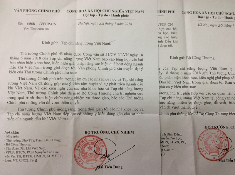 此前,在18/6/2018,越南能源雜志發(fā)送了第51 / CV-NLVN號文件“關(guān)于提高越南石油和天然氣行業(yè)活動效率的科學評論文章,建議和解決方案的綜合報告。