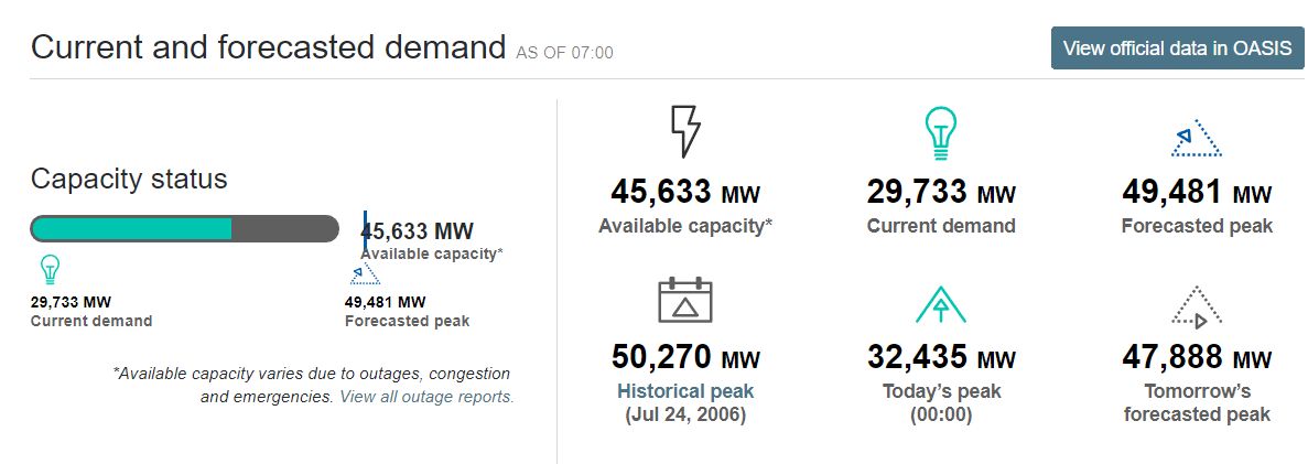7月25日,CAISO的日前預(yù)測(cè)峰值為49,665兆瓦。該系統(tǒng)的可用容量為45,633兆瓦。如果不采取行動(dòng),該州正在考慮可能的停電情況。