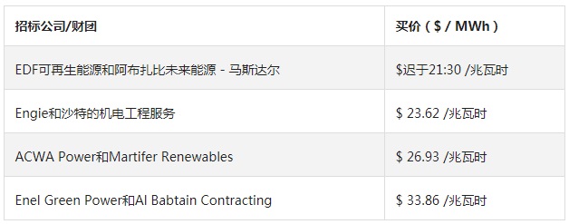 然而,最令人驚訝的是,這些出價(jià)中有兩個(gè)是多么低。法國(guó)EDF Energies Nouvelles的最低出價(jià)僅為每兆瓦時(shí)(21.h)21.30美元,而法國(guó)電力公司Engie的出價(jià)僅為23.62美元/ MWh。