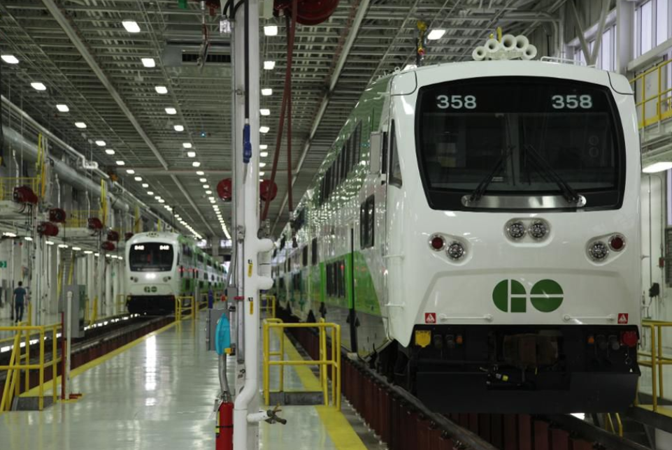 在加拿大安大略省怡陶碧谷的GO Transit Willowbrook鐵路維修設(shè)施中的列車。加拿大設(shè)想了一個綜合能源系統(tǒng),其中小型模塊化核反應(yīng)堆不僅可以生產(chǎn)動力,還可以生產(chǎn)汽車,卡車和類似火車的氫燃料。(攝影:Creative Touch Imaging Ltd./NurPhoto via Getty Images)