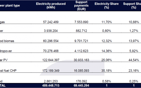 支付給太陽能光伏設施所有者的最大金額為3090萬歐元,產生了122.6吉瓦時。Borzen在報告中稱,化石燃料熱電聯(lián)產收入為1610萬歐元。