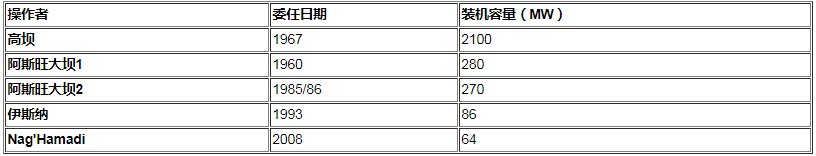 表19:埃及的水力發(fā)電廠(chǎng)