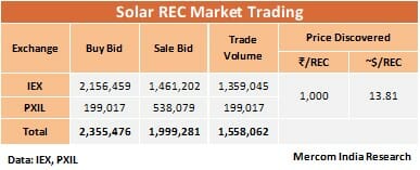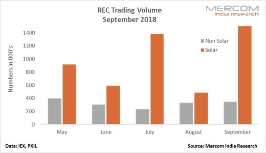 在印度能源交易所(IEX),共有1,359,045個太陽能REC,以1,461,202的買入價買入,買入價為2,156,459。在IEX上,與2018年8月交易的216,223個太陽能REC相比,本月共交易1,142,822個太陽能REC。