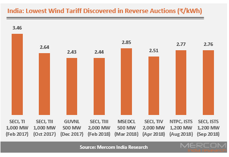 在印度太陽能公司(SECI)進(jìn)行的1200兆瓦Tranche-V風(fēng)力拍賣中,出現(xiàn)了?2.76(~0.038美元)/千瓦時(shí)的中標(biāo)關(guān)稅。