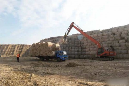 圖為阜蒙縣惠農(nóng)生物質(zhì)熱電有限公司正在收購秸稈等燃料。