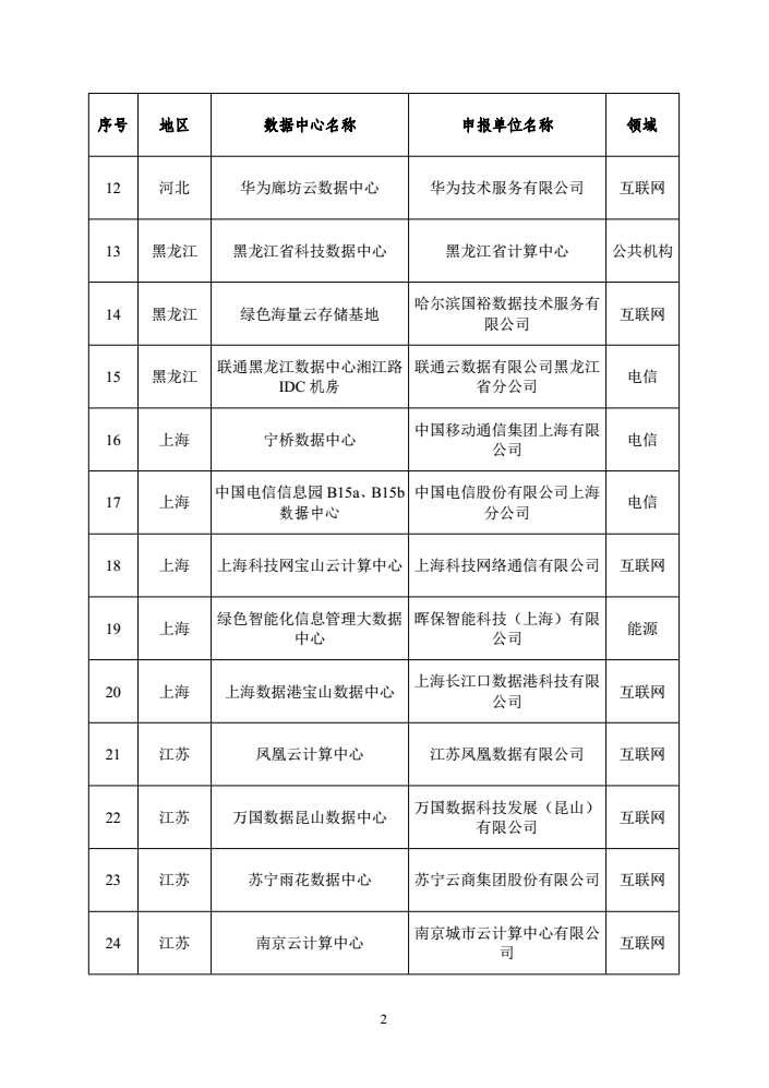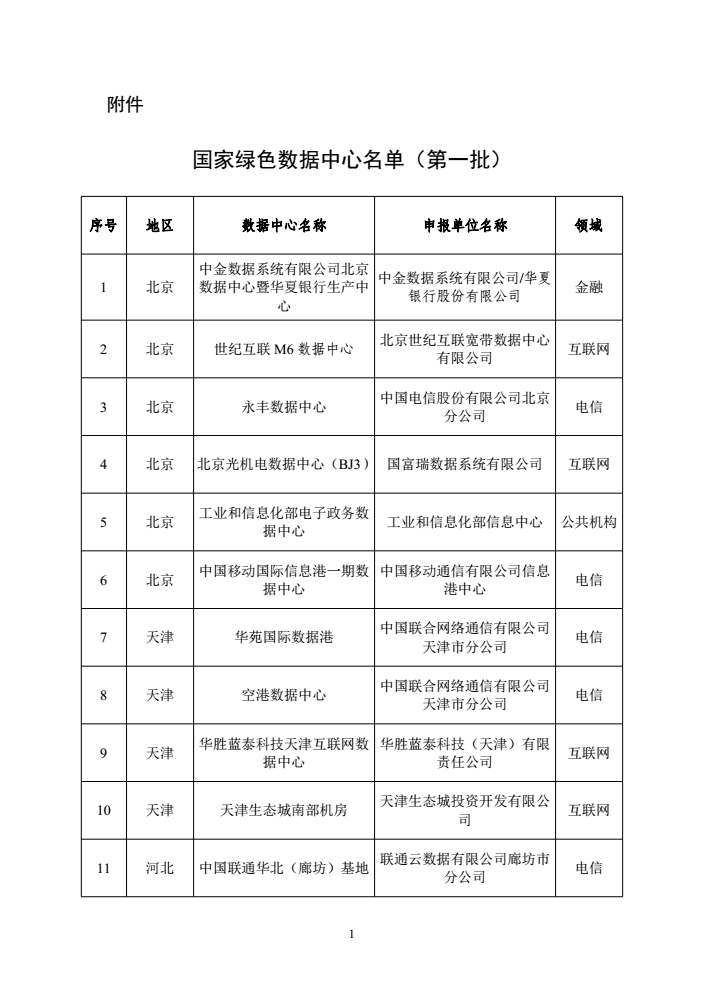 附件:國(guó)家綠色數(shù)據(jù)中心名單(第一批)