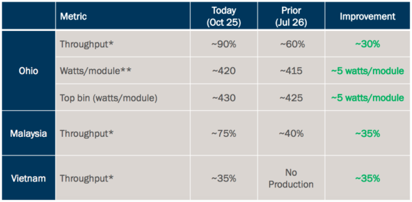 展望First Solar提前在線生產,并表示由于第二個越南工廠的進展快于預期,它將在2019年第一季度開始生產,而不是第二季度。