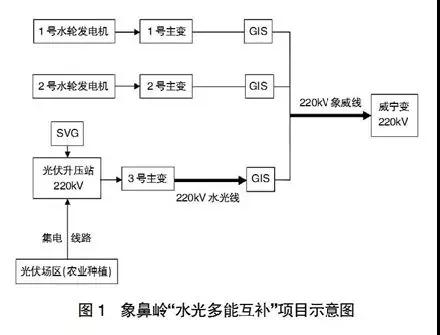 象鼻嶺水電站裝機240兆瓦,多年平均電量約9.3億千瓦時,象鼻嶺—威寧線路年利用小時約3875小時。光伏電站年發(fā)電量約0.63億千瓦時,與象鼻嶺水電站打捆送出后,象鼻嶺—威寧線路年利用小時提高至約4175小時。