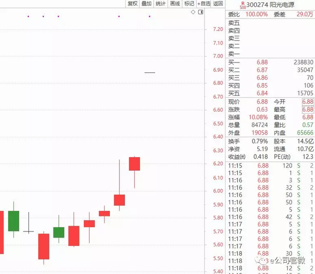 11月5日早盤,光伏板塊延續(xù)漲勢,隆基股份(601012)、陽光電源(300274)、錢江生化(600796)、林洋能源(601222)、通威股份(600438)等多只個股漲停。