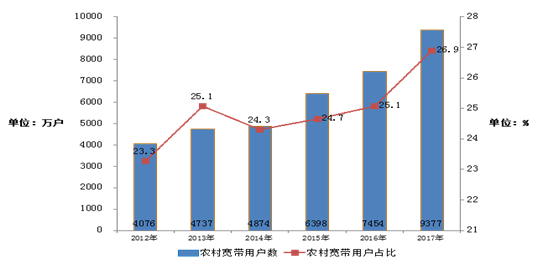 圖2-4 2012-2017年農(nóng)村寬帶接入用戶情況
