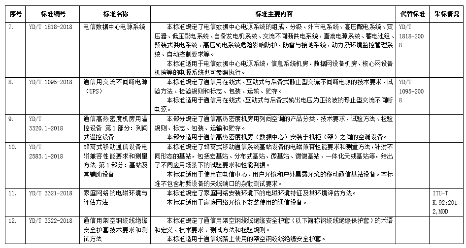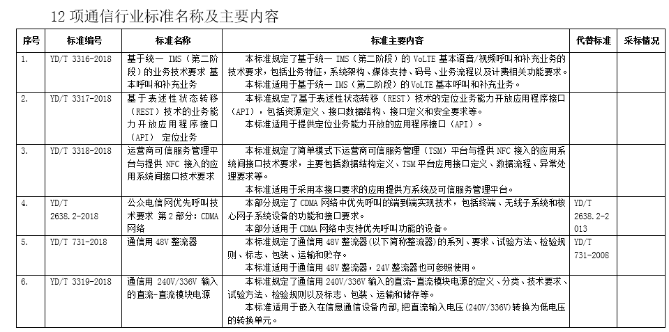 附件: 12項通信行業(yè)標準名稱及主要內(nèi)容