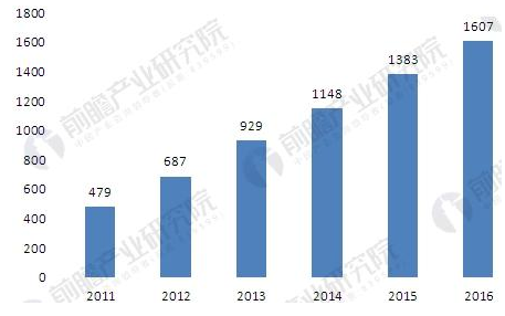 2011-2016年中國合同能源管理行業(yè)產(chǎn)值規(guī)模(單位:億元)