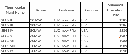 早在20世紀80年代初,首諾便為Luz公司在美國加利福尼亞州Mojave沙漠相繼建成的9座槽式太陽能熱發(fā)電電站SEGSI~SEGSIX提供導熱油,SEGSI系列電站總裝機容量達35.38萬千瓦,為全球最早一批商業(yè)化光熱發(fā)電項目。此后,Therminol®VP-1被全球二十多家商業(yè)化槽式太陽能熱發(fā)電電站廣泛采用,首諾導熱油覆蓋的商業(yè)化槽式太陽能熱發(fā)電電站總裝機容量達1.4GW。