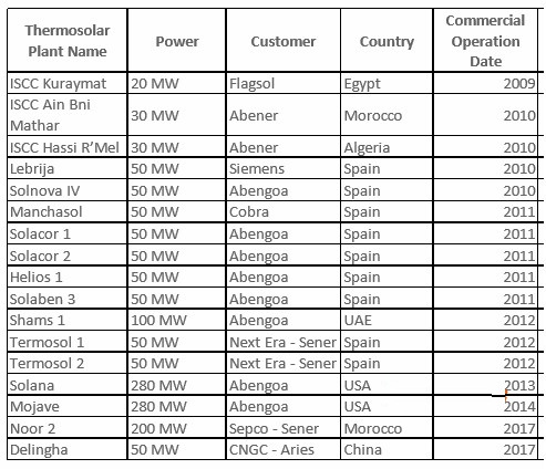 表:Therminol®VP-1導熱油業(yè)績表(光熱發(fā)電CSP行業(yè))