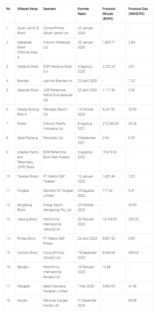 據(jù)佐科,除了在2020年六個(gè)塊跳出合同,在6月,政府將宣布其決定阻止合同到期2021年。同時(shí),三擋是Rokan,奔突Segat和海峽班讓。但是,對(duì)于Bentu Segat而言,ESDM部門在2017年和未來(lái)20年擴(kuò)大了合同范圍。