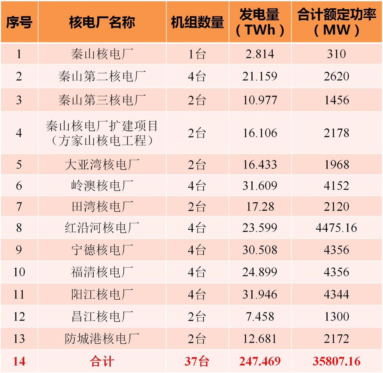 2017年,我國核電廠運(yùn)行數(shù)據(jù)如表2所示。