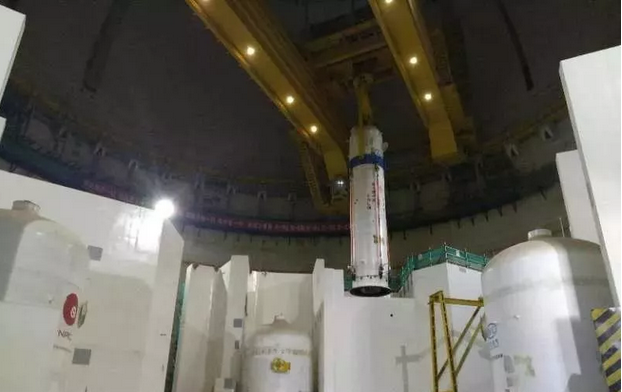 福清5號穩(wěn)壓器空重約104噸,總高13.8米,要將其引入核島需跨越壓力容器及大半個核島,還要避開前期已就位的蒸汽發(fā)生器和主泵等核島主設備,安裝工作難點多且就位要求高。為此核動力院設計人員提前進駐現(xiàn)場,與安裝單位現(xiàn)場分析解決問題,同步修改完善安裝方案,16日歷經吊裝、引入、翻轉等工序后吊入穩(wěn)壓器隔間,最終于12時26分成功安裝就位。