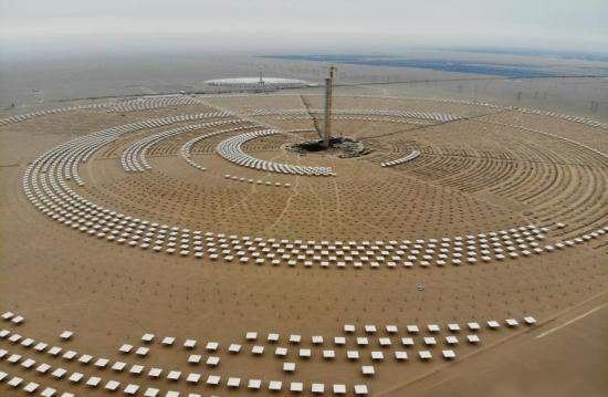 作為中國首批光熱發(fā)電示范項(xiàng)目的建設(shè)基地之一,該電站有全球單機(jī)最大的聚光集熱鏡場,共一萬余臺(tái)定日鏡。