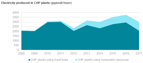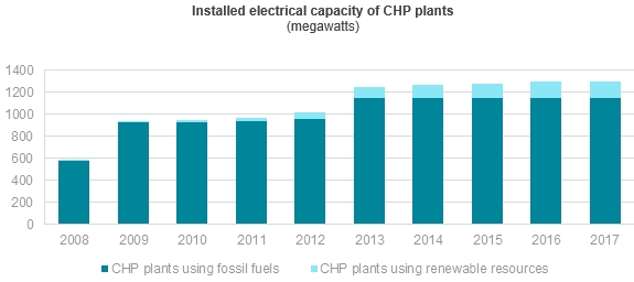 自2008年以來,由RES供??電的熱電聯(lián)產(chǎn)電廠的裝機容量增長了15倍。與2016年相比,這些熱電聯(lián)產(chǎn)電廠的裝機容量增加了8%,2017年達到155兆瓦。