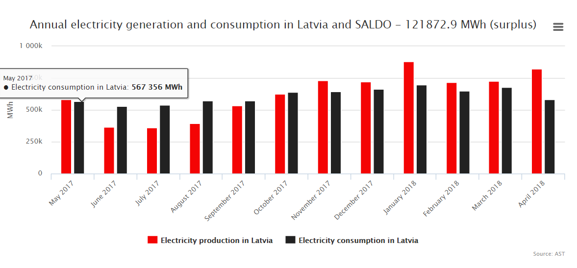 拉脫維亞的電力消費(fèi)量為581403兆瓦時(shí),拉脫維亞招標(biāo)區(qū)域的北方電池平均價(jià)格下降至40,03歐元/兆瓦時(shí),拉脫維亞消費(fèi)當(dāng)?shù)匕l(fā)電量達(dá)到141%